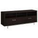 Update your space with glamour and grace. This TV console has a bold, stylish appearance that enhances any living room. A brushed silver frame and high-shine chrome hardware add a posh, polished accent to its strong silhouette. Its large storage area includes two large drawers and three open compartments, while top-quality craftsmanship keeps valuables safe and secure. This gorgeous console is available in your choice of white or cappuccino finishes, offering two attractive options to accentuate your personal style.