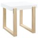 This modern end table combines a whimsical design with cheerfully bright hues. Its thick, square white high-gloss tabletop adds a minimalist aesthetic while resting on a double U-shaped base in a light natural finish. The base showcases subtle wood grain patterns, providing a charming contrast. Perfect for compact spaces,...
