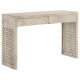 Built from solid mango wood for an eco-friendly touch to your home, this contemporary console table makes a striking statement piece in a space. Designed with a lightly hued, whitewash finish, this console table lends itself nicely to a variety of color palettes and decor styles. Plank side panels with a diamond-motif lattice cut outs offer a charming element to the simple, smooth surfaces of this understated furniture piece. Two drawers offer room for storage and more, while a spacious tabletop keeps lamps, decor and more. Place this lovely console table in a beach cottage foyer or allow it to double as a desk in a global-inspired bedroom.