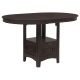 From the Lavon Collection is this modern counter height table. Table top extends 18" when the leaf is folded up for an intimate gathering of close friends. Closed storage unit on based makes impromptu gatherings a breeze to entertain. Top shelf on base holds cups or glasses for whatever the occasion. Matching espresso finish counter height chairs upholstered in black leatherette are sold separately. x