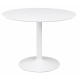 Clean, modern lines meet retro charm in this round dining table. A smooth white painted top rests on a sleek pedestal base, all finished in a glossy white powder coating for a unified and fresh look. Ideal for casual dining spaces or cozy kitchen nooks, this table comfortably seats four and provides a bright, minimalist centerpiece that pairs effortlessly with a variety of dining chairs.
