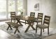 Rustic warmth and timeless craftsmanship define this inviting dining collection. Built from solid rubberwood in a knotty nutmeg finish, each piece showcases organic wood grains and hand-planed edges that lend a handcrafted feel. The rectangular table’s trestle-style X-base adds a modern farmhouse touch, while the ladder-back chairs feature padded fabric seats for everyday comfort. Designed to bring people together, this collection blends durability, charm, and relaxed sophistication for any dining space.