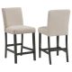 Elevate your dining experience with this chic counter height chair, a blend of simplicity and texture. Wrapped in the luxurious touch of boucle fabric, the chair offers a tactile feast, inviting guests to savor every second seated. Its silhouette stands tall on charcoal grey legs, a grounding finish that brings a sophisticated contrast to the chair's creamy hues. The understated elegance of this chair is a tribute to minimalist design, yet it hums with a warmth that enlivens any contemporary kitchen or bar area. It's where comfort meets style.