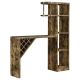 This is an artful, asymmetrical use and storage solution for the wine connoisseur who craves eye-catching style along with practicality. Four roomy vertical compartments allow for intelligent storage of bottles or glasses, with an additional, striking diagonal wine storage unit nestled into the structure. A long horizontal wood surface creates further open, creative storage units, or just stand at the bar and enjoy your drink with friends. The design of this unit allows for placement on the open floor, or alongside a wall for maximum utility in a tight space. It's a smart and elegant solution; if only wine pairings were this easy!
