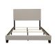 Embrace a relaxed modern style with the smooth edges from this upholstered bed frame. Complete with solid wood legs in black finish, the open frame warms up spaces with simplicity. Chic and individually placed, the chrome nailhead trim adds pops of metallic radiance along the fabric-covered headboard. Constructed of smooth rectangles, the open silhouette feels calm and welcoming. Neutral and soft hues ensure that traditional and contemporary design schemes are maintained.