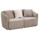 Augment living room seating with the inviting profile of a modern loveseat. Its curved shelter back and sloping arms establish a refined look and feel, while tailored upholstery offers curated appeal. The loveseat is upholstered in chenille with a neutral latte coloration and slight wavy pattern that creates a sense of movement and energy. Arms are slightly recessed, allowing seating to stand out and accentuating a thoughtful profile. Accent pillows feature feather blend fill and offer added comfort, perfect for lounging or entertaining.