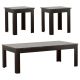 This three-piece coffee table set features engineered wood construction with a sleek, black wood finish. The set includes a coffee table and two matching end tables, each showcasing a grey faux marble top that adds a modern touch. The sturdy design is supported by four square legs, providing stability and durability. Ideal for those seeking stylish yet functional occasional tables, this set effortlessly complements contemporary living spaces with its clean lines and versatile look.