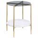CoasterEveryday 710337 Jonelle - Round Glass Top End Table White Marble Shelf Gold - Smoke