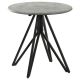 Industrial elements and sleek modern lines bring forth this modern end table. A metal butterfly-like base design of open and flared hairpin style legs in a gunmetal finish offer a striking visual interest to the furniture piece and the room in which is rests. Placed on top of the chic base is a round tabletop that portrays a molded cement for a rustic modern farmhouse flair. The cement-inspired top also offers a textured sandy feel to resemble the true material. Place this modern side table beside an accent chair or allow it to showcase a sculpture or art piece in a loft studio.