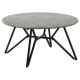 Gunmetal finish hairpin legs offer an industrial edginess to this modern coffee table. Designed with a faux cement top in an elegant round shape, this spacious cocktail table offers a casual, chic space to keep books, cocktails and more. The cement-like top even features a sandy feel for a hint of realist texture. Keep this coffee table in front of a mid-century modern sofa or allow it to take center stage in front of a sectional. Sculptural-like in itself, this coffee table looks stunning in a loft apartment and even lends a minimalist approach to homes.