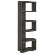 Purposeful imbalance tells a story. Designed with a whimsical profile, this bookcase brightens up a contemporary space. A visually pleasing arrangement of five tiers creates shelf space for books and decor. Finished in a cool weathered grey, it provides versatility and design power. Make this bookcase a focal point in a home office or casual room.