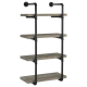 Industrial design can be elegant, as shown by this wall shelf. Plumbing pipe frame highlights the rugged utility that's the hallmark of the style. Wall hanging adds a unique element to the piece. Incorporates four (4) open shelves for ease of storage or display. Available in a variety of finishes and widths for your...
