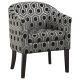 Pull out the retro design blueprint and add this accent chair to the mix. A busy print in grey and white dazzles within a monotone or colorful blend of surrounding furnishings. Retro in style, its barrel back silhouette speaks to the beloved look of mid-century. Skinny tapered legs with a cappuccino finish provide an enticing coordinating feature. This chair makes its mark in a transitional family or living room.