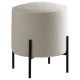 Minimal and playful, this modern ottoman offers extra seating in a contemporary style home. Wrapped in soft, plush upholstery, it provides a bright, airy touch to any space. Supported by slim, rod-like metal legs in a matte finish, this round ottoman contrasts both in color and form, creating a distinctive focal point. Perfect for adding a touch of earthy, natural vibes to your living room, it functions as both additional seating and a comfortable footrest. Use it beside an accent chair or as a stylish accent piece in any room.
