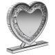 • The heart shape mirror features a silver frame and stand for displaying on a table or shelf