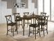 Bring elegance to the table with this fine counter-height dining room set from the Buhl II Collection. The saber legs and graceful curves of the rectangular table top add a level of sophistication to the design, and is enhanced by the burnished oak finish. The padded fabric and cross-back design of each chair provides a comfortable place to sit at your next meal or posh event.