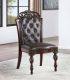 The most festive occasions deserve the most stylish furniture! Finished in brown cherry, the set's rich details include decorative faux wood carvings on the legs reminiscent of baroque styling. The matching chairs feature button-tufted leathered in espresso.