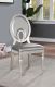 Differentiate your dining room with the beautiful mirror tile accents and brilliant tones of this transitional style dining chair! The chairs' round keyhole backs and turned legs add to the overall softness of the set, while leatherette upholstered seats accentuate the brilliance of the metallic silver finish.