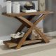 Angled x-shaped table supports bring some flair to this otherwise minimalist table. With such a gorgeous earthy tone, this antique light oak finished table doesn't need much more than a plank style table top to showcase as much wood grain variety as possible. Perfect for any home setting that wants a touch of calming...