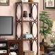 Finished in cherry, this pier cabinet stands at either side of the TV console and offers three levels of shelving display.