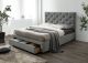 Comfort and functionality are the hallmarks of this fully upholstered, mattress-ready bed. On the comfort side, there's the rich linen-like fabric that wraps around the frame of the bed, culminating in a simple rectangular headboard with beautiful diamond tufting. Functionality-wise, the foot end of the bed is a smooth rolling drawer with casters; it's the perfect storage spot for any extra pillows or beddings within arm's reach.