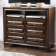 This media chest offers two solutions at once. It is visually stunning, and has unrivaled storage space to keep your fabulous new room clutter free. With six drawers and two open shelves, this media chest can hold anything to fit your entertainment needs. The brown cherry finish and antique hardware of this piece gives it a subtle elegance.