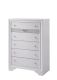 Brighten your room with the sheen and shine that this chest delivers. The gleaming white finishes promote a refreshingly clean aesthetic with silver lines that glisten in any light. Silver tone pulls detail the chest brilliantly. Glimmering and glamorous, create the room you have always dreamed of!