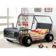 Fuel any child's imagination with this rover design twin bed. Sturdy metal construction and padded leatherette headboard offer both safety and comfort, while the front hood serves as a table for homework and play. Finished in gun metal, this bed is made for explorers of the future!