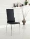 Bold design and modern details make these chairs great additions to any modern dining area. With padded leatherette seat and chrome legs, this piece is available in black or white.