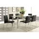 Leatherette seating sets off this modern chrome and glass contemporary dining set. Bold design and modern details make this great for the urban kitchen or dining area.