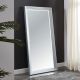 This contemporary full-length mirror will add a glamorous touch to your space. Details include integrated LED light trim, grooved edges, and 5mm beveled glass. Beautiful and functional, the mirror is perfect for a master bedroom or chic guest room.