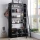 It's the ultimate Industrial library-style bookcase. A ladder connects to the side as a space-saving attachment that can be removed and easily hung to the row bar above the top shelf, facilitating easy access to out-of-reach items. This very fun conversation piece includes the facade of an impenetrable high-security vault surely designed to project a sense of security for your most treasured first-editions!