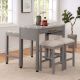 A great kitchen island set up needs two things: enough space and storage to work with. This piece does just that. On top is white faux marble material that's both stylish and easy to keep clean. On the side is a large drawer for your tools and utensils. The matching stools come in the same light gray finish with upholstered fabric seats, And don't let the small stature fool you; the table top expands by virtue of the pullout sliding piece that rests on caster legs and tucks nicely underneath the table top. What you get is a kitchen that responds to your needs and transforms to whatever the occasion requires.