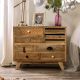 Striking spalted wood grain and roughly sawn finish make this chest pop naturally. The sheer amount of drawers makes it possible to store a ton of your personal items, while the angled legs give it a more modern foundation. The front panel of each drawer has a different texture - hand carved patterns displaying tribal designs.
