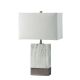 The squared-off angles of this table lamp is perfectly complementary to any contemporary space. The white marble-like body sits on a metal base with a hidden USB outlet.