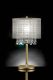 Imported crystal droplets cascade off this table lamp finished in gold with a brilliant white shade
