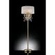 Atop the stunning gold-colored base is a beautiful ivory shade with etched floral design. The beaded arms and hanging crystals add even more luxury to this floor lamp.
