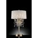 Atop the stunning gold-colored base is a beautiful ivory shade with etched floral design. The beaded arms and hanging crystals add even more luxury to this table lamp.