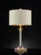 A petite and mysterious faux crystal sphere provides the balance of this magnificently crafted mixed-materials table lamp. The square base supports an elegantly designed stem that hosts the classic ivory shade with a shimmering gold interior lining.