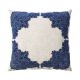 The edges of this natural tone pillow is bordered with floral, baroque design in indigo blue. It's a statement piece for the traditional and fancy living room.