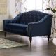 Posh and elegant, this loveseat is the perfect focal point for your living room. It's rich in traditional flair; the deep tufted backrest and arms gives off a majestic flair, while the nailhead trim radiates undeniable class. Meanwhile, the off-beat, deep indigo color allows this piece to be the center of attention in a boho chic setup, surrounded by an assortment of patterns and fantastic textures.