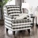 This accent chair is upholstered in the incredibly popular plaid pattern. It looks stylish and it's a pattern that just never seems to go out of style, so adding it to your home means it'll fit in for a long time. The two tone, black and ivory gives it flexibility to mix and match with a variety of other pieces or interior decors.