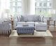 Enjoy a breath of fresh air in your living space with this modestly-sized sectional set. Loose back and box seat cushions are padded and upholstered in high-quality performance fabric, stainresistant and easy to keep clean. With tapered block legs finished in espresso, the pristine light gray base color helps emphasize the stylish patterns on the throw pillows and matching ottoman.