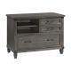 The Foundry Home Office Collection is offered in a wire-brushed Pewter Finish for a natural, rustic appeal. Constructed from Oak Veneer and Select Hardwood, with metal accent plates throughout.