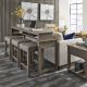 The essence of the urban living furniture is its unique ability to fit many different styles-Rustic, casual, contemporary-The Parkland Falls collection has both beauty and function. The console bar table can be used for a laptop or a snack while watching your favorite shows featuring two power outlets, two USB ports, and a cushioned upholstered seat in an Oatmeal color fabric. Consists of console bar and three stools.