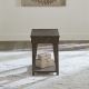 If you enjoy rustic the Arrowcreek chairside table is for you. Finished in a weathered stone with slate tile inserts in a basket weave design on top with tapered legs. Crafted with solid reclaimed pine and pine veneer with a bottom shelf for additional storage. Scaled perfect for space saving between two recliners or chairs.
