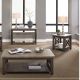 Whether your style is rustic, urban or farmhouse Heatherbrook is sure to complement. Crafted of poplar solids and acacia veneers with a charcoal and ash finish. Features bottom shelf for additional storage, appealing open grid end panels with block legs and cocktail table offers casters for easy moveability. Put the finishing touch on your living room. Kit consists of one cocktail table and two end tables.