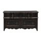 Create an elegant and traditional look with the Chesapeake credenza. Crafted with rubberwood solids with cathedral hickory veneers, this piece features rounded pilasters, file drawers, and a scallop shaped base rail. The antique black finish with wire brushing and heavy rub-through, accompanied by the antique pewter drop...