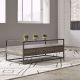 Simplify your urban space with the Jamestown rectangular cocktail table. Crafted of rubberwood solids, metal tubes and mindy veneers, this piece features a tobacco finish, one full extension drawer, an open shelf for additional storage, and an appealing beveled glass top. This modern cocktail table would make a great...