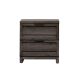 This urban night stand is the perfect way to enhance your room with a modern style. This piece is crafted with melamine and rubberwood solid framing, featuring bottom case dust proofing, solid wood picture frame drawer fronts, anchored by a solid wood sled base. The melamine is scratch resistant and is sure to last in any home. The dark antique brass center finger pull hardware effortlessly adds dimension to this piece, making it stand out in any space.